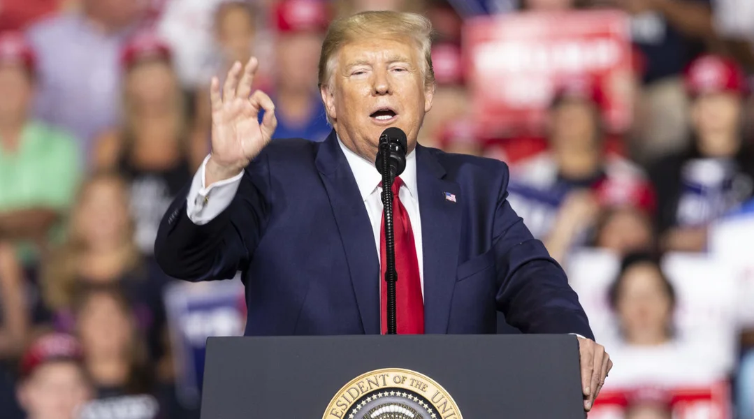 "Ech gesi keng Rezessioun. D'Welt ass an enger Rezessioun. Dat ass vläicht e bëssen ze haart ausgedréckt, mee kuckt iech China un. Hinne geet et ganz schlecht. Ech hu grad gesinn, datt si hiert schlechtst Joer a 27 Joer haten, wéinst menger Politik. A si wëllen elo negociéieren. Hir Firmae verloossen d'Land. A si entloosse Millioune Leit, well si keng 25 Prozent u Stroftaxe bezuele wëllen."