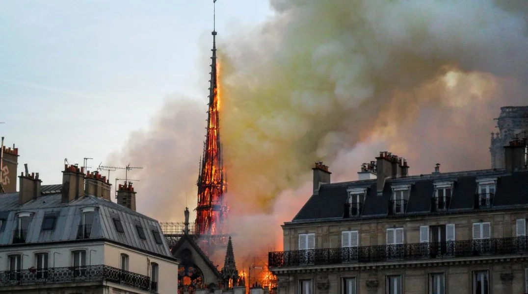 Beim Feier ass een Tuerm vun der Kathedral zesummegefall.