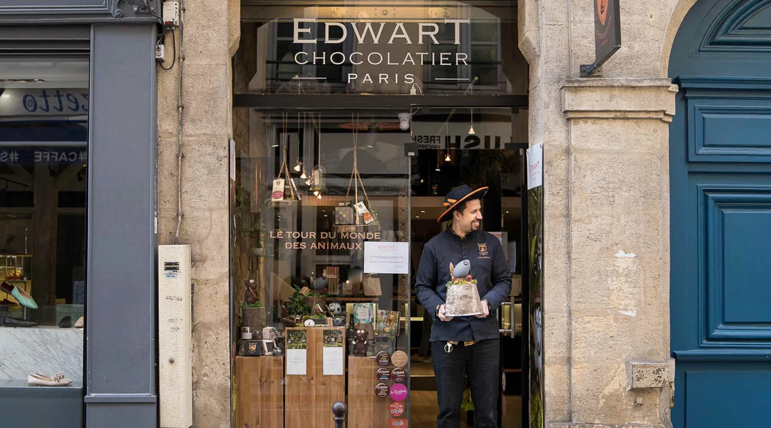 Mat esou engem Ustuerm vu Clienten huet de Chocolatier Edwin Yansané net gerechent. Hien ass frou, datt säi Buttek am Quartier Marais am véierten Arrondissement trotz den neie Restriktiounen huet dierfen opbleiwen. Fir Chocolatieren ass Ouschteren nämlech eng vun de wichtegsten Zäiten am Joer.