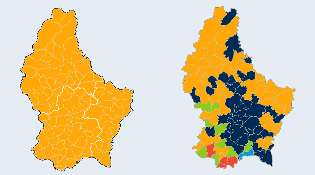 D'Landkaart um offiziellen Internetsite vun de Resultater vun den Europawahlen zu Lëtzebuerg war 2014 komplett orange, an alle Gemengen hat d'CSV d'Nues vir.