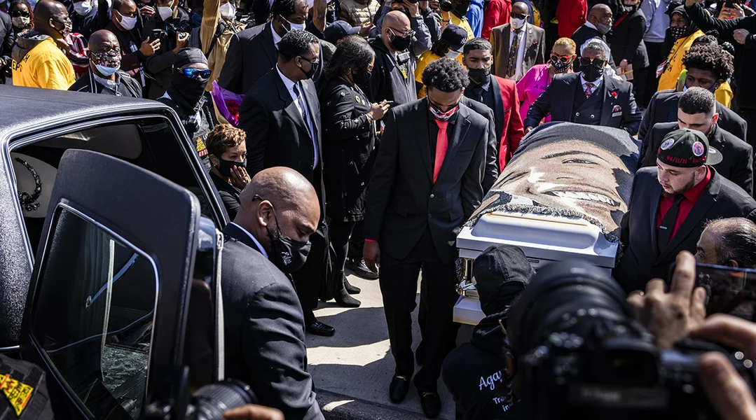 Nëmmen zwee Deeg nodeems den Ex-Polizist Derek Chauvin zu Minneapolis fir de Mord um Afro-Amerikaner George Floyd schëlleg gesprach gouf, koum et an där nämmlechter Stad zum Begriefnes vun engem weidere schwaarze Mann, dee vun enger wäisser Polizistin erschoss gouf. Bei der Trauerfeier fir deen 20-Joer alen Daunte Wright waren och Familljemembere vum George Floyd dobäi.