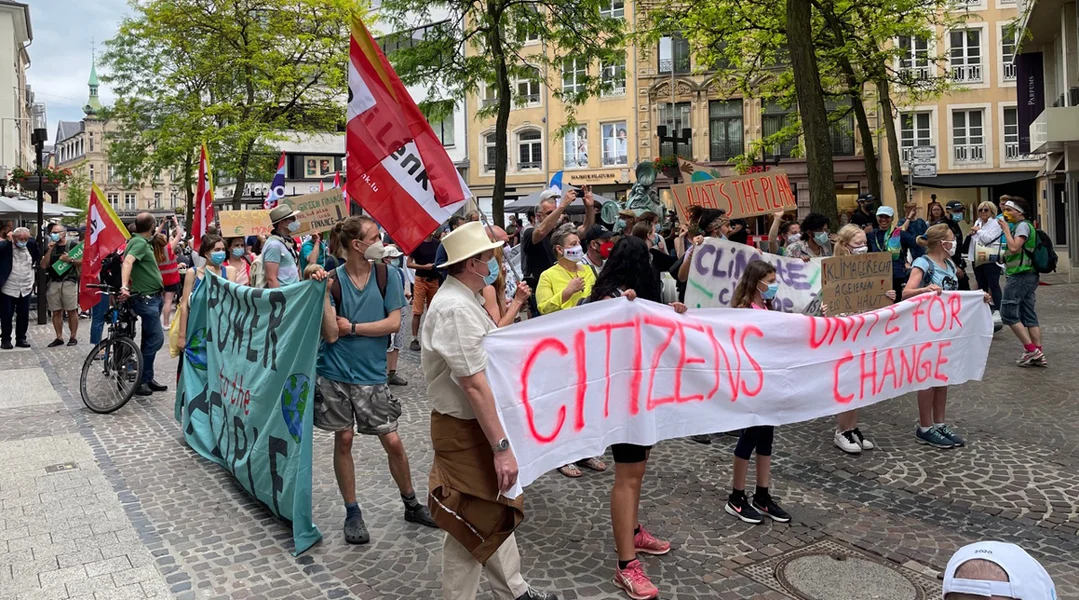 "Citizens Unite for Change", d'Plattform mat enger Dosen Organisatiounen, manifestéiert fir de Sujet Klimaschutz ze deconfinéieren . Bis zu 150 Persounen hu participéiert. Virun der Pandemie war d'Mobiliséierung vu Klimaaktivisten, vu Jonker a Bierger enorm. Déi Dosen Organisatiounen, déi d'Koalitioun "Citizens Unite for Change" forméiert hunn, bréngen de Sujet Klimaschutz nees an d'Ëffentlechkeet.