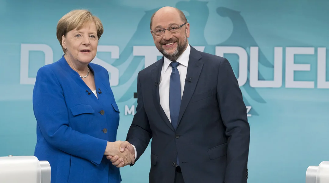 Déi kontrovers Debatt, déi d'Salz an der Demokratie wier, wier an Däitschland ënnergaangen. Dat sot de Martin Schulz ganz am Ufank vun der Televisiouns-Debatt. Déi éischt an eenzeg direkt Konfrontatioun tëscht der aktueller Bundeskanzlerin Angela Merkel an hirem Erausfuerderer. D'Duell tëscht deenen zwee gouf mat Spannung als éischten Héichpunkt vum Wahlkampf erwaart. Mä knapp dräi Woche virun de Bundestagswahlen bleift déi zitéiert kontrovers Debatt aus.
