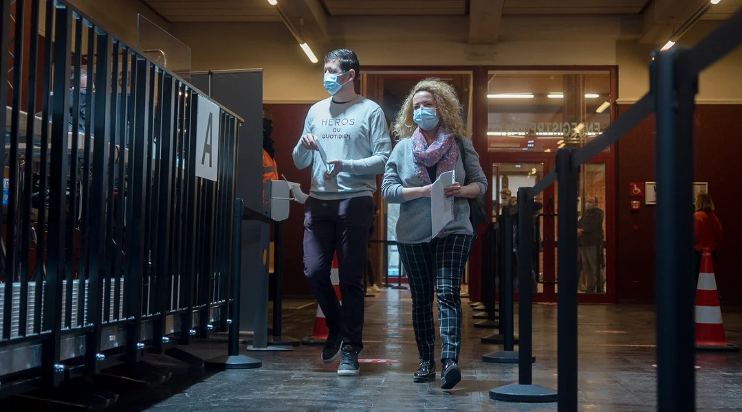 Gëschter Mëtteg Punkt 12 Auer goufen an der Victor-Hugo-Hal um Lampertsbierg déi éischt Leit géint de Coronavirus geimpft. Wéi geplangt war fir d'éischt Personal aus de Spideeler un der Rei, dorënner och eng Partie Frontalieren. Dat wier ee wichtegt Zeechen, esou de Luc Feller vum Héije Kommissariat fir déi national Protektioun, well de Gesondheetssecteur vill op Frontaliere géif zielen. 32 Dokteren an Infirmiere ware sur place fir den Encadrement ze maachen.