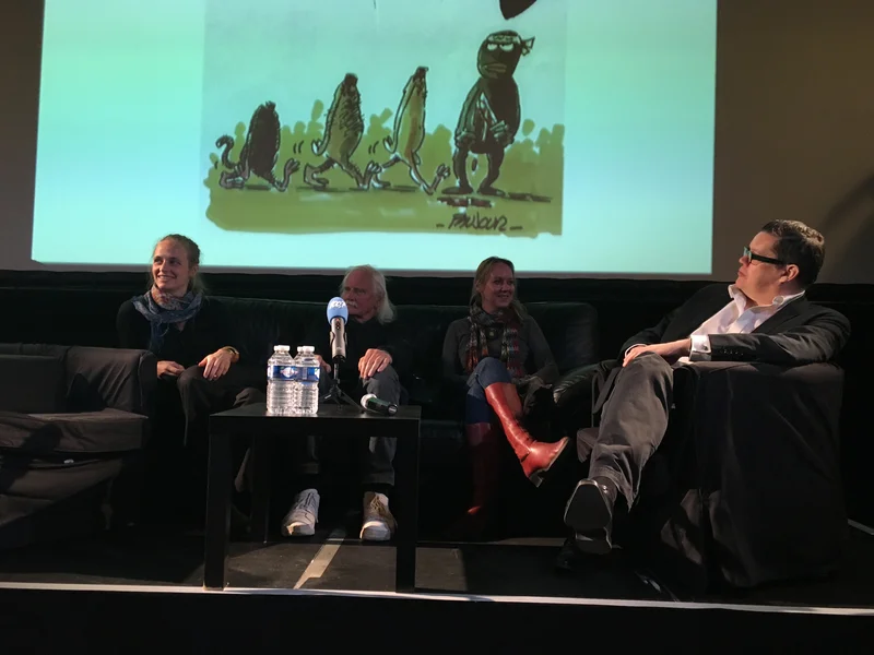 Déi Escher Kulturfabrik hat den 20. Abrëll zu engem Diskussiounsowend mat de véier Karikaturisten invitéiert. Theme waren d'Grenze vun der Fräiheet, vun der Toleranz an d'Bedeitung vu politeschen Zeechnungen. Dee selweschten Owend koum d'Noriicht, datt bei enger Schéisserei op de Champs-Elysées op d'mannst ee Polizist ëm d'Liewe komm ass. Déi radikal-islamesch Terrormilice "Islamesche Staat" huet d'Attentat kuerz drop revendiquéiert.