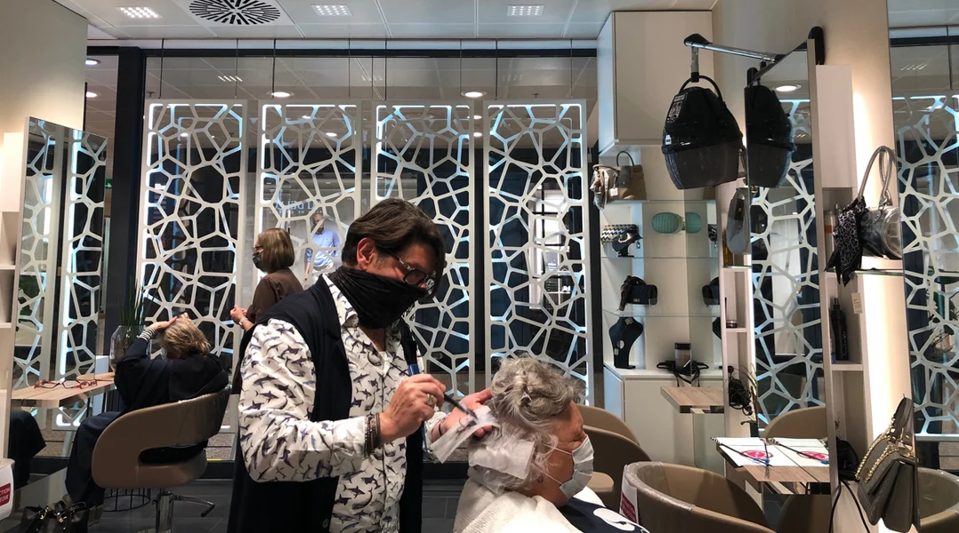 Zanter zwou an enger hallwer Stonn huet de Coiffer-Salon Piu Bello op, eng éischt Schicht Clienten ass schonn erduerch. Gewäsch, geschnidden, geföönt, d'Bigoudie gedréit. Hei gëtt nach fäerdeg gekämmt an da mat e bësse Spray fixéiert. De Patron Pino Colucci ass méi wéi frou, datt hien a seng Mataarbechterinnen nees kënnen schaffen - och wann him hanner dem Buff nawell de Brëll uleeft. An natierlech net esou vill Cliente wéi soss kënnen zerwéiert ginn.