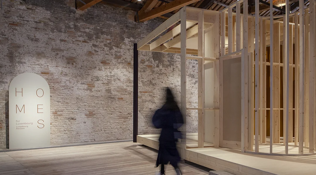 Mat dem modulären Holzbau oder dem Holzbau iwwerhaapt, läit déi Lëtzebuerger Propos am Trend. De Pavillon vun den USA an den Giardini vun der Biennale honoréiert, datt déi allermeescht Wunnengen an den USA aus Holz, engem natierlechen an nowuessende Rohstoff, net aus Betong gebaut sinn. Dat mat enger grousser Holzkonstruktioun, op déi ee kann eropklammen.