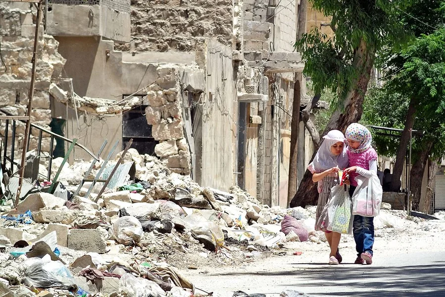 Kämpf um Buedem a Loftattacken hu ganz Deeler vun der syrescher Stad Aleppo zerstéiert. D’Populatioun muss mam Minimum auskommen. Zënter 2012 sti sech hei syresch Truppen a Rebelle géigeniwwer, et geet ëm d’Kontroll vun de fréierer Wirtschaftsmetropol. De syresche Fotograf Ammar Abd Rabbo war an de leschte Joeren ëmmer nees op der Plaz fir sech e Bild... a Biller ze maachen.