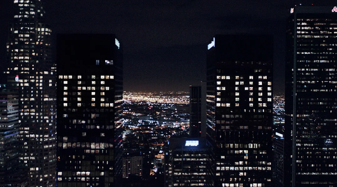 Fir Los Angeles sinn et eng Rei Aarbechten. Dorënner eng Foto, an der Owesdämmerung, vun deem berühmten “Hollywood”-Schrëftzuch, deen hei bal e bëssen ausgeknipst wierkt. Spektakulär ass d’Filmopnam “The End in the Background of Hollywood” - nees aus engem Helikopter gefilmt. Et ass en Travelling hannerzeg, dee bei den Héichhaiser am wirtschaftlechen Zentrum vun der Stad ufänkt, wou d’Zwillingstierm vum City National Plaza esou beliicht sinn, datt se de Schrëftzuch “The End” erginn – hei gi méi Bedeitungen ugedeit.