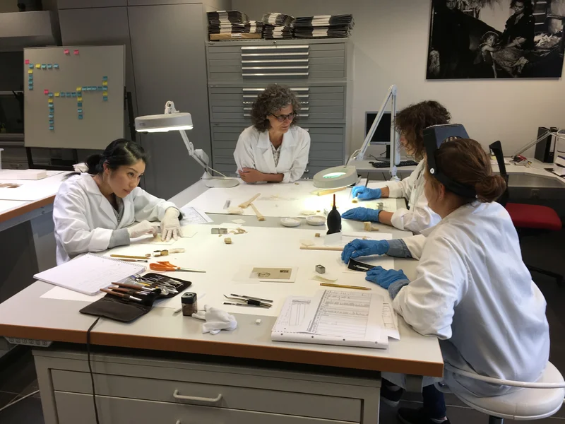 Am Grupp ass Jidderee fir sech a kontrolléiert déi eege Gesten. Wann et Froen oder Zweiwel ginn, gëtt awer am Grupp diskutéiert. D'Recherche wier den éischte Schratt bei dëser Aarbecht. "Et huet een hei fir de Musée oder d'Archive geschafft an historesch Dokumenter geséchert. Am Prinzip gesäit een duerno och näischt vun der Restauréierung, just wann ee ganz no bäi geet", esou d'Anne Jüster.