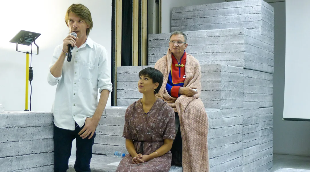 "Ech wollt ee Raum schafen, dee sech permanent verännert", seet de Kënschtler Andreas Angelidakis. Hien huet d'Parlament vun de Kierper kreéiert, ee Raum mat grousse Cuben aus Schaumgummi, déi sech verschibe loossen. An dësem Sall sinn déi ëffentlech Virféierunge vun der Athener documenta 14. D'Haaptiddi vum Programm wier et, de Mënschen hir Virstellungen dovun, wéi a wou diskutéiert gëtt, ze hannerfroen, erkläert den Andreas Angelidakis. "A wéi mécht een dat? An deem een de Raum verännert, an deem diskutéiert gëtt."
