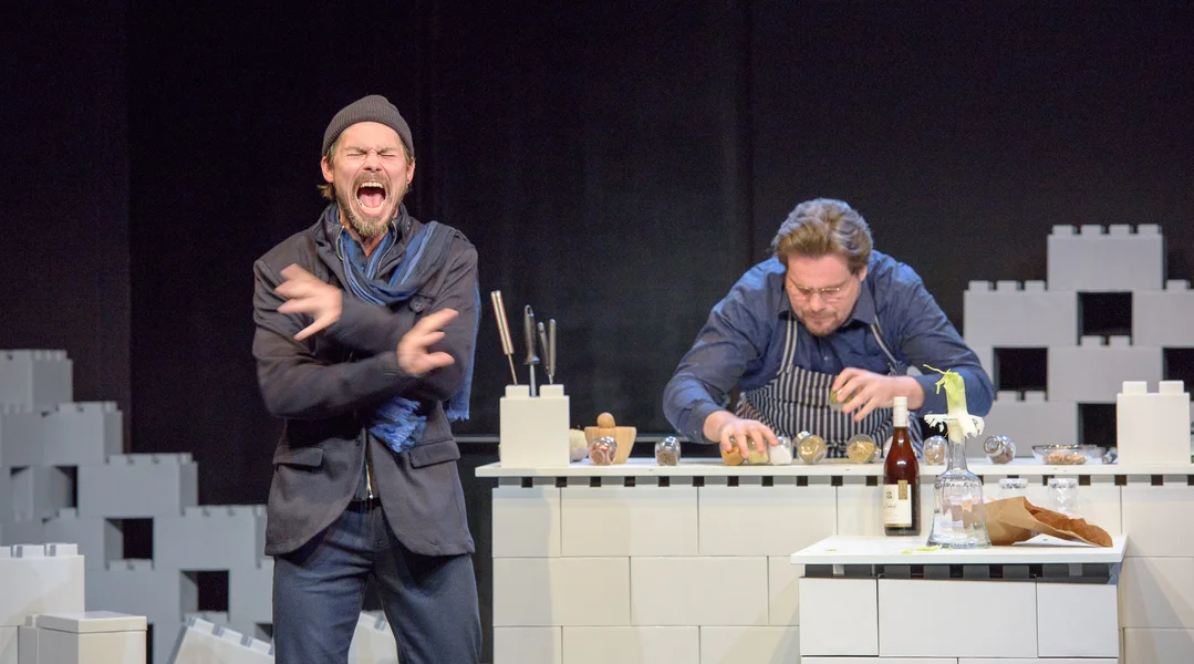 Genee do setzt der Sibylle Berg hiren onbequemen Text un. Wéi reagéiert een op esou Gedanken, Iwwerleeungen a Wënsch? Mat lénks-intellektueller Iwwerhieflechkeet oder mat Empathie? An do si mer erëm bei der Fräiheet, déi och duerch d'Bühnebild, dat aus risege Legostäng zesummegestallt ass. D'Anne Simon gesäit am Dekor engersäits d'Symbolik vun enger grousser Spillwiss.