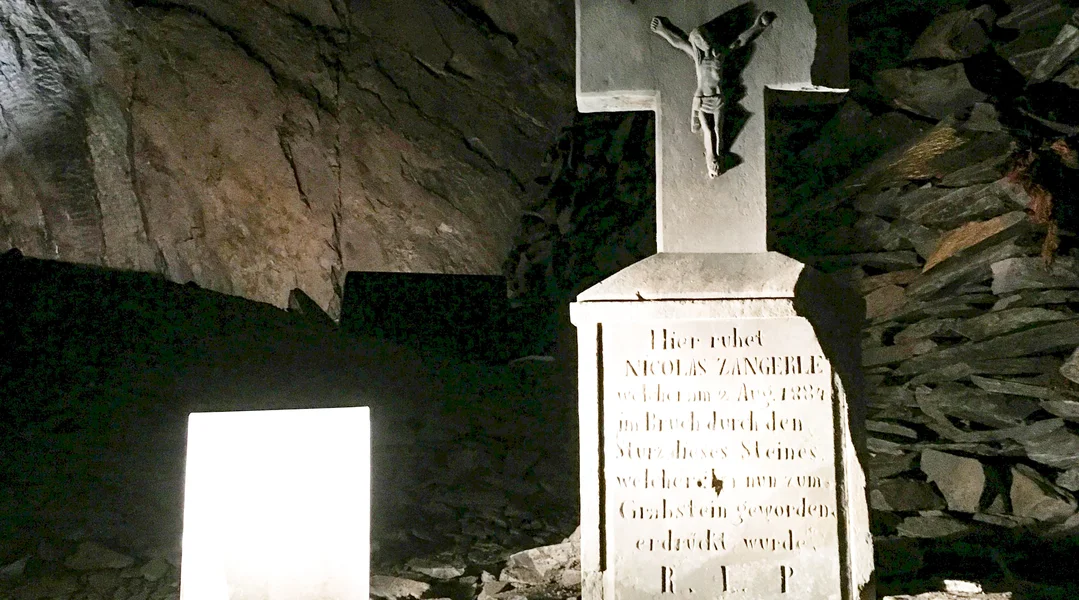Brauchbar Steng hunn d'Aarbechter an den 1890er Joren allerdéngs eréischt fonnt, nodeems si sech 300 Meter wäit an de Bierg eragesprengt haten. D'Ofbaukummer ass Kathedral gedeeft gi, well si plazeweis iwwer 14 Meter héich a ronn 100 Meter laang ass.