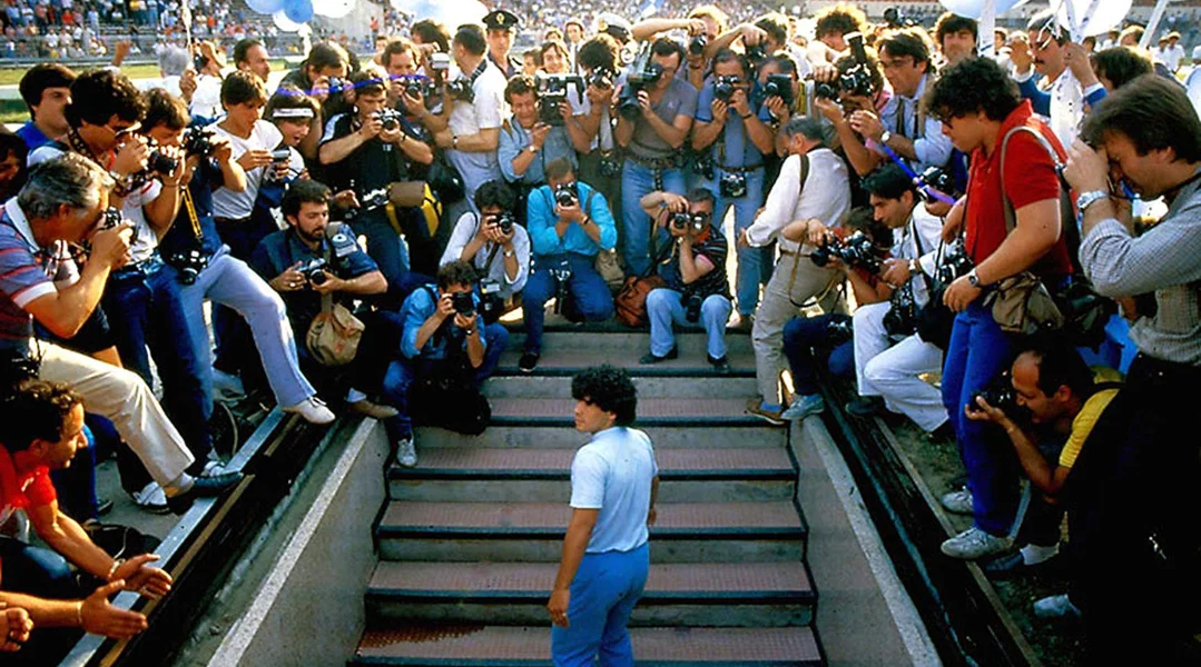 Dem Asif Kapadia säi Parti pris besteet doranner, datt hien Neapel an de Mëttelpunkt vun allem setzt. Net fir näischt féiert déi éischt Sequenz de Maradona mam Auto an de San Paolo-Stadion, en Hexekessel, oder e Vulkan, an deem d'Passioune brutschelen, op deen de Fussballspiller eropgedroe gi wier, fir duerno an de gliddege Lava gestierzt ze ginn. Neapel, déi süditalienesch Stad, an déi de Fussballspiller als de gudde Borscht Diego ukoum, do wéinst senge sportlechen Exploite vun der fussballverréckter Populatioun gefeiert, jo reegelrecht vergëttert gouf; Neapel, wou den Diego séier un déi falsch Frënn vun der Camorra gerode war, ofhängeg gouf vun Drogen a Fraen, a sech zum manner sympathesche Personnage "Maradona", zu engem Däiwel entwéckelt huet. Alles wat virun Neapel war, ass fir de Realisateur Prolog, alles wat no Neapel koum, Epilog.