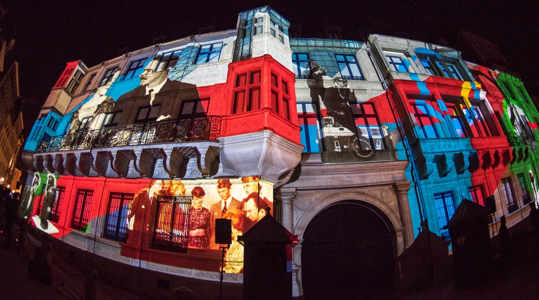 Deen Androck krut een, wann ee sech déi sougenannt Sound a Light-Show ugekuckt huet, déi leschten Donneschdeg an der Stad iwwert d'Bühn goung. Woubäi ee méi präzis muss sinn: Si goung iwwert d'Fassad, an zwar iwwert déi vum Palais Grand-Ducal. Mat Beamere goufen historesch Fotoe vun der groussherzoglecher Famill op d'Palaismaueren projezéiert. De Grond waren d'Feierlechkeeten fir 125 Joer Dynastie Letzebuerg-Nassau.