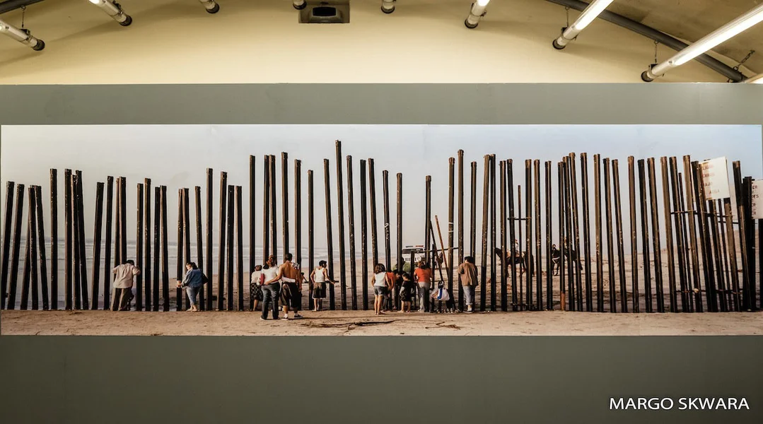 - Verschidde Prototyppe fir e Rempart, also Mauerechantillonen, an enger Rei laanscht déi mexikanesch-amerikanesch Grenz. De Kai Wiedenhöfer huet se mat enger Dron am Donst opgeholl.