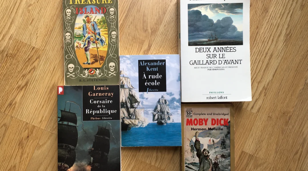 E Glossaire gëtt et an där Phébus-libretto-Ausgab leider net. Dofir kann ee sech zum Beispill d'Memoirë vum Louis de Garnerey: "Corsaire de la République", beim selwechte Verlag Phébus, besuergen. Oder dem Richard Henry Dana säi Klassiker "Two Years Before the Mast, oder "Deux Années sur le gaillard d'avant", op Franséisch iwwersat vum renomméierte belsche Sinolog a grousse Miereskenner Simon Leys.