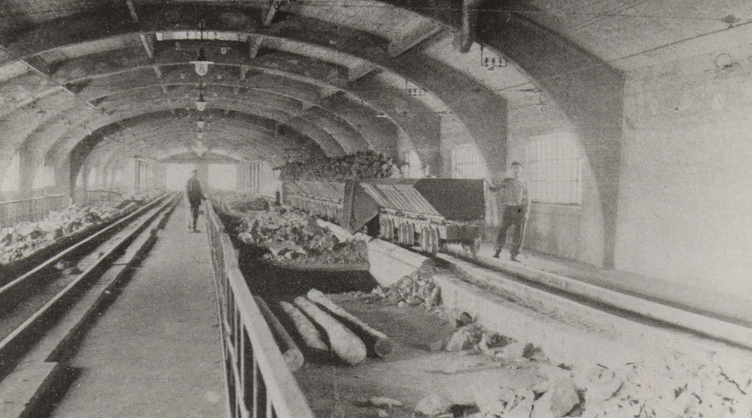 An am Streikfall war d'Luede vum Héichuewen an domat de ganze Schmelzbetrib a Gefor. Och dofir decidéiert de Rudolf Seidel 1906 eng ultramodern Rezeptiouns-, Lager- a Verdeelungsanlag vum Eisenäerz ze bauen, déi aus enger Äerzbréck an 30 Äerzbunker aus Beton armé besteet.
