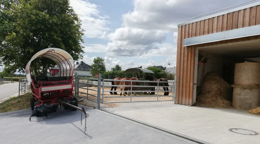 Kanéngercher, Schwäin, Hénger, Geessen an Ieselen, wie gäre mat Déieren a Kontakt kennt, fir deen ass d'Robbesscheier genee dat Richtegt. An d'Ardennerpäerd hunn nach eng speziell Stellung. "Mir hunn zéng där Schaffpäerd, mat deene mir och mat de Kutsche fueren. De Kontakt mam Déier geet gutt bei Kanner, mee och Erwuessener, dat léisst kee kal. Dat ass schonn eng vun eisen Haaptsaachen", seet de Jean Zeches vun der Robbesscheier.