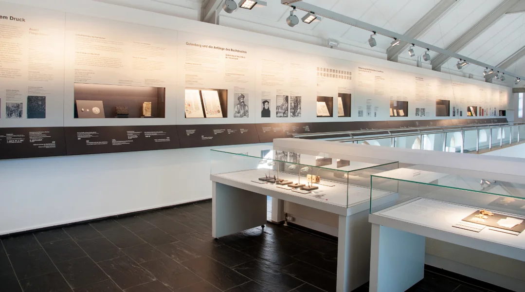 Zu Lëtzebuerg huet d'Buchproduktioun eréischt 1598 ugefaangen. Wéi 2000 de Kulturhuef seng Dieren opgemaach huet, gouf et eng éischt Ausstellung zu Éiere vum Gutenberg, déi d'Zäitlinn 1850 bis 1950 thematiséiert huet. 2018 gouf se nei iwwerduecht. De Visiteur geet un Hand vun Texter, Biller, Filmer a Maschinnen de Wee vum Buch vun der Gutenberg-Zäit bis haut. Um Enn vun der Visitt däerf een och selwer drécken.