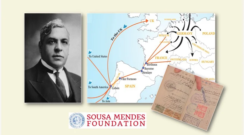 "Den Dr. Aristides de Sousa Mendes, 1885-1954, huet am Laf vum Zweete Weltkrich als portugisesche Konsul ëm déi 30.000 Mënschen vun den ënnerschiddlechsten Nationalitéiten, dorënner och no bäi 10.000 jüddesch Flüchtlingen, virum sécheren Doud gerett, andeems hien hinnen illegal Visaen ausgestallt huet. Dowéinst gëtt hien, sécherlech och mat Recht, als 'de Schindler vu Portugal' bezeechent, well seng Verdéngschter deene vu sengem däitsche Pendant, net nëmmen an näischt nostinn, mee zueleméisseg esouguer bei Wäitem iwwertreffen. Dobäi ass et tragesch, datt grad dee Mann, deen esou ville Leit duerch säin oneegennëtzegt a couragéiert Handelen d'Liewe gerett huet, spéider selwer juristesch verfollegt a berufflech wéi privat komplett an de Ruin geroden ass."