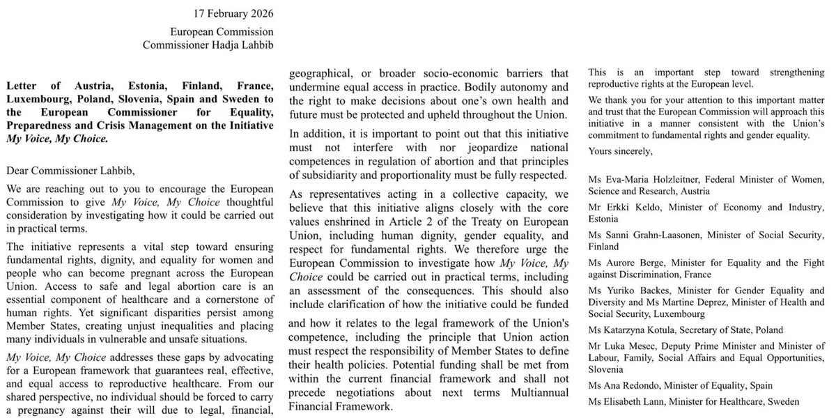 Dat sech elo d’Regierunge vun néng EU-Länner dohannert stellen, wier ee wichteg Signal, esou d’Initiativ en Donneschdeg an engem Communiqué. De Bréif, deen eis virläit, gouf direkt vun zwou Lëtzebuerger Ministerinnen ënnerschriwwen - där fir d’Egalité vun de Genren, Yuriko Backes an der Gesondheetsministerin Martine Deprez.
